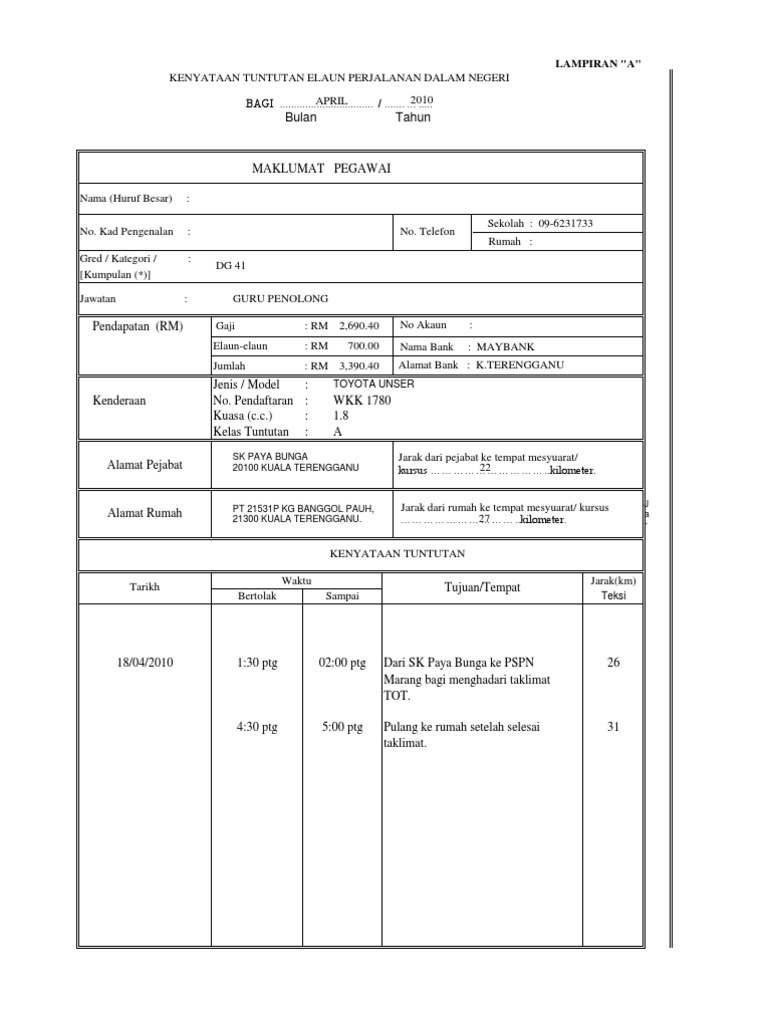 Details borang tuntutan elaun perjalanan dalam negeri maklumat pegawai pendapatan (rm) kenderaan 1 jabatan perkhidmatan awam. Elaun perjalanan kenderaan kelas 'c'. Senarai permohonan tuntutan perjalanan kakitangan pejabat setiausaha kerajaan tahun 2015. Elaun khas bagi kakitangan perubatan bahaya radiation 12. Info terkini perluasan skim mysalam (11 februari 2020).