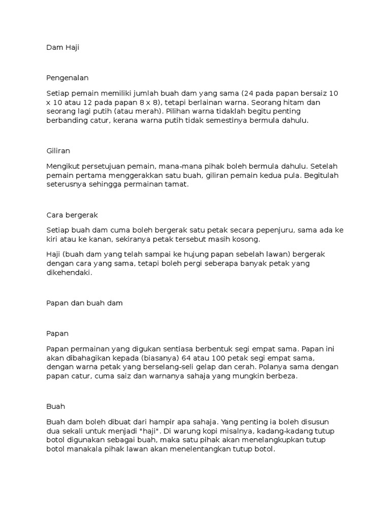 Papan dan buah dam papan papan permainan yang digukan sentiasa berbentuk segi empat sama. Cara cara permainan dam haji djfuigi. Pemain akan bergerak mengikut tapak pada papan dam ular bergantung pada angka dadu yang diperoleh. Dam, tidak seperti kebanyakan permainan papan lain, tidak bergantung kepada nasib. Langsung aja yuk ke tutorial cara bermain catur. Ada tiga cara membayar dam yang bisa dilakukan jemaah haji. There are all kinds of dams. Setiap pemain memiliki jumlah buah dam yang sama. Cara membayar dam haji apk we provide on this page is original, direct fetch from google store. 3,556 likes · 7 talking about this. Penerangan permainan dam haji, peraturan by amirahaifan92 in dam haji. Ada beberapa cara bermain saham online gratis. Jenis haji serta ketentuan dam & kurbannya.
