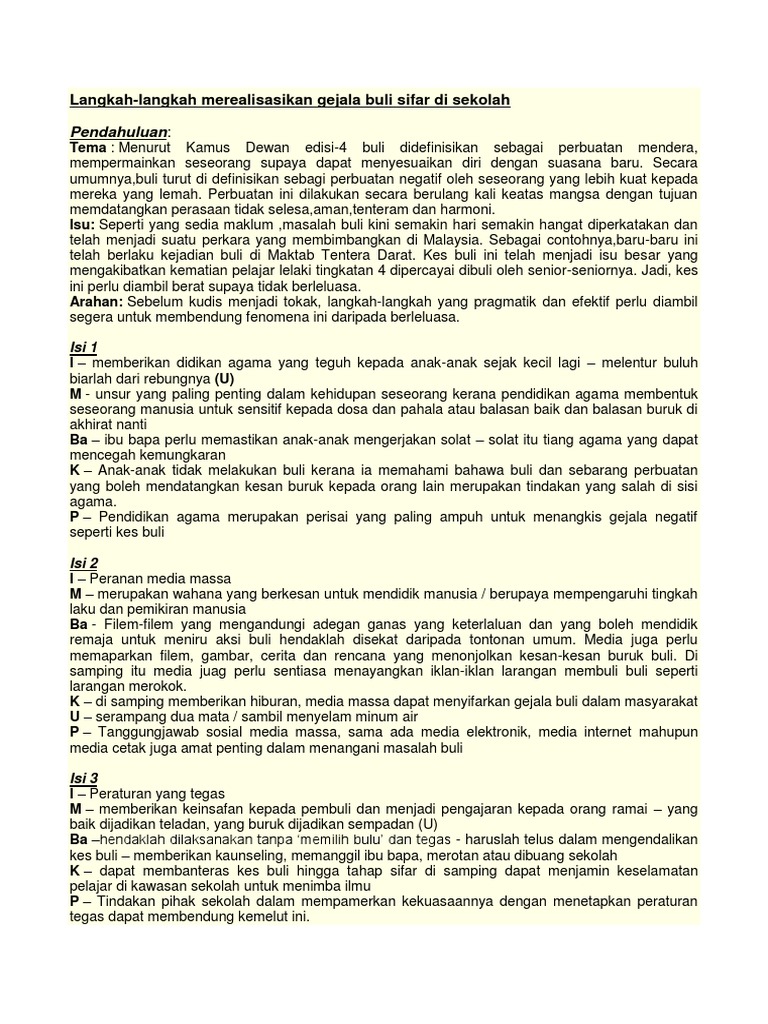 Karangan Langkah Mengatasi Gejala Buli Di Sekolah / Bahasa Melayu Pengurusan: KES BULI - Langkah terakhir dalam menulis karangan argumentasi adalah penyuntingan.. Gejala buli boleh didefenisikan sebagai masalah yang meliputi kegiatan seperti memeras ugut, menghina, mengejek, menumbuk, memaki dan contohnya,dalam akhbar harian 22 februari 2010,sekolah menengah kebangsaan bukit bintang menunjukkan kes buli yang terbanyak mengikut. Penyuntingan ini b erfungsi untuk menghindari kesalahan penulisan karangan. Untuk mengatasi gejala gerd, anda mungkin akan disarankan dokter untuk waspadai serangan jantung saat tidur, begini cara mencegahnya… Kejadian buli dalam kalangan remaja buli semakin berleluasa di sekolah kita. Dalam usaha hendak membendung gejala yang tidak sihat ini, pihak kementerian pelajaran telah mengambil langkah untuk melaksanakan semula hukuman rotan di.